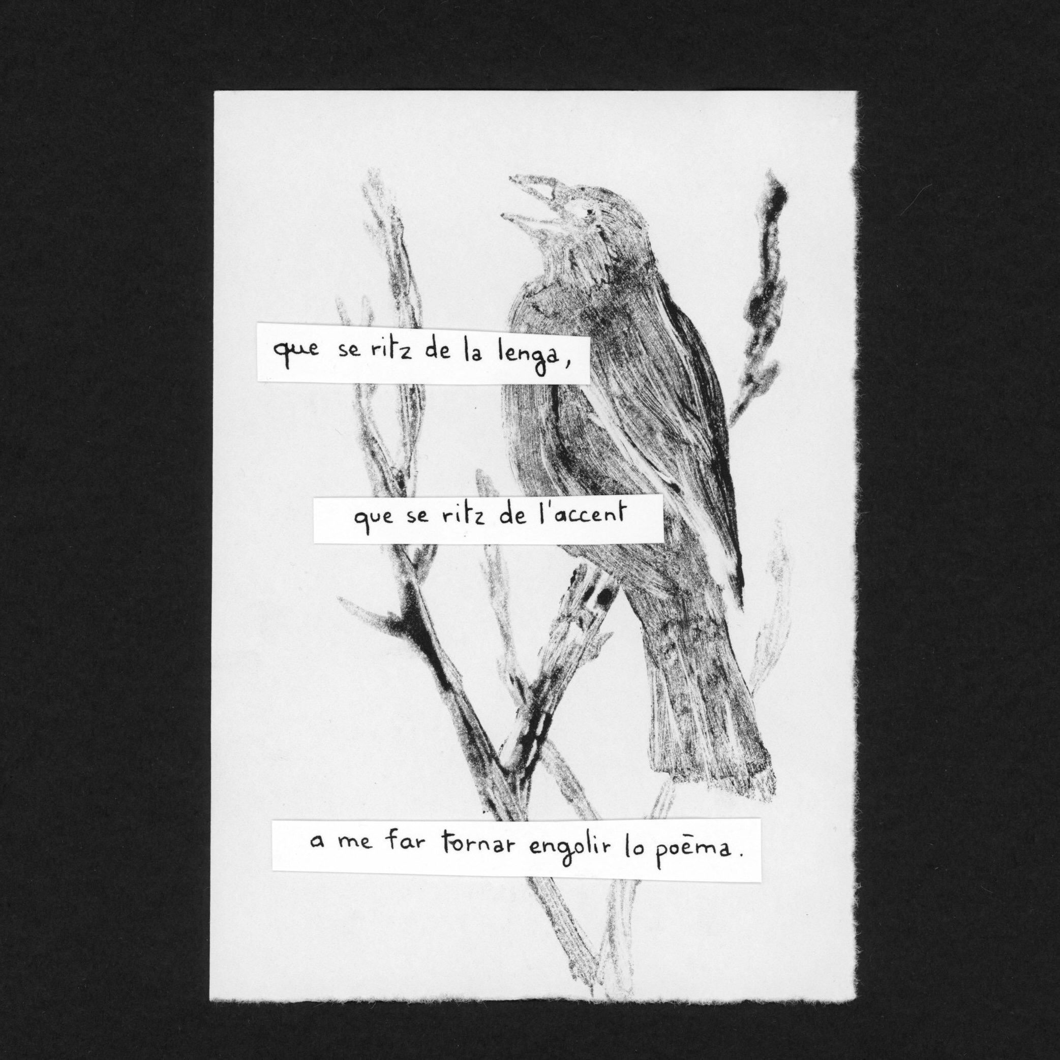 Seria de 8 monotipes realizats en 2024 acompanhats del poèma de Laurent Cavalié extrach del recuèlh « Quicòm de roge » Edicion : La Lenteur. En musica dins l’album Roge de La Mal Coiffée (Sirventés).