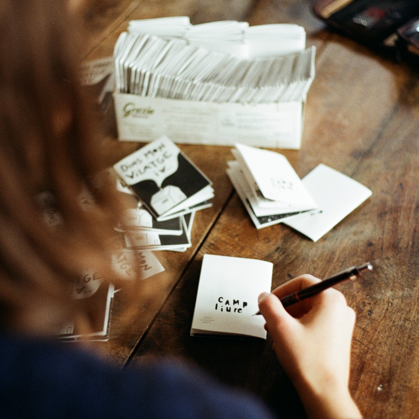 Dos zines de 16 paginas format A7 estampats sus papièr reciclat 80g e religats amb doas agrafas, numerotats e signats amb un estampon. Tirats a Severac lo Castèl (12) en 2023 a 100 exemplars cadun.