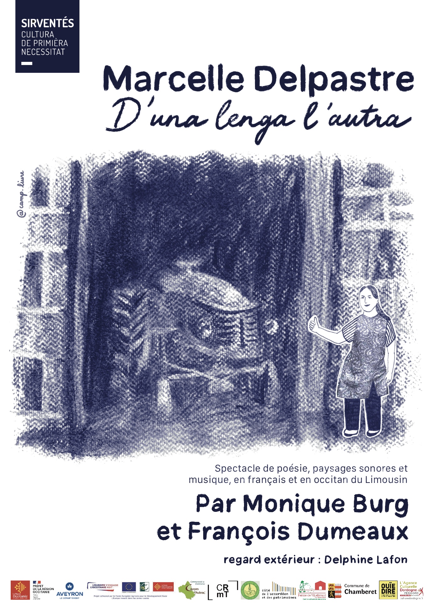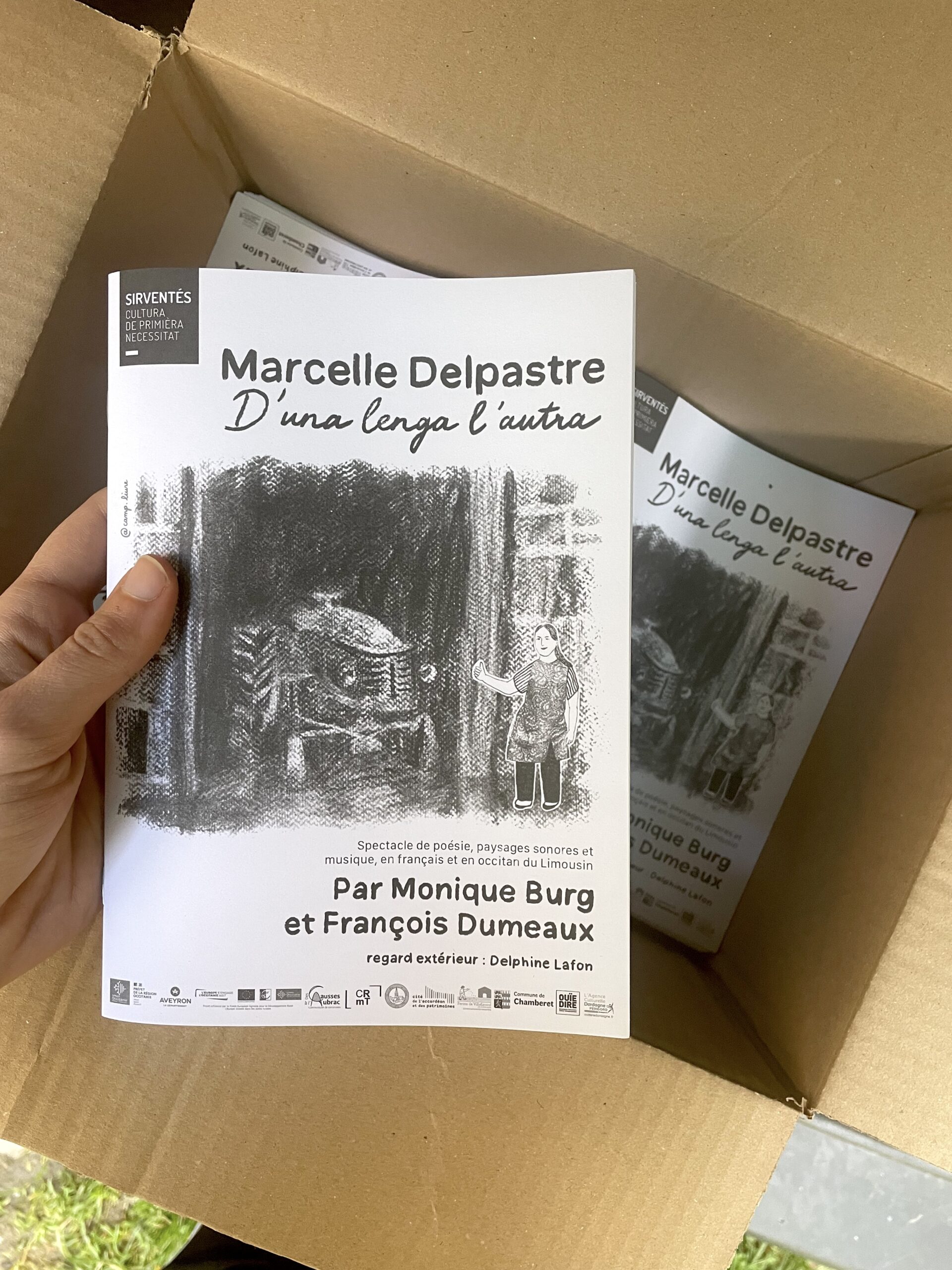 D’una lenga l’autra Aficha realizada en 2025 per l’espectacle « Marcelle Delpastre : d’una lenga l’autra » de Monique Burg & François Dumeaux, produsit per Sirventés. Realizacion d’un libròt de reviradas + de tipografias per l’extrach videò. Categoria : grafisme Date: 17 novembre 2025 Share: fb tw pin