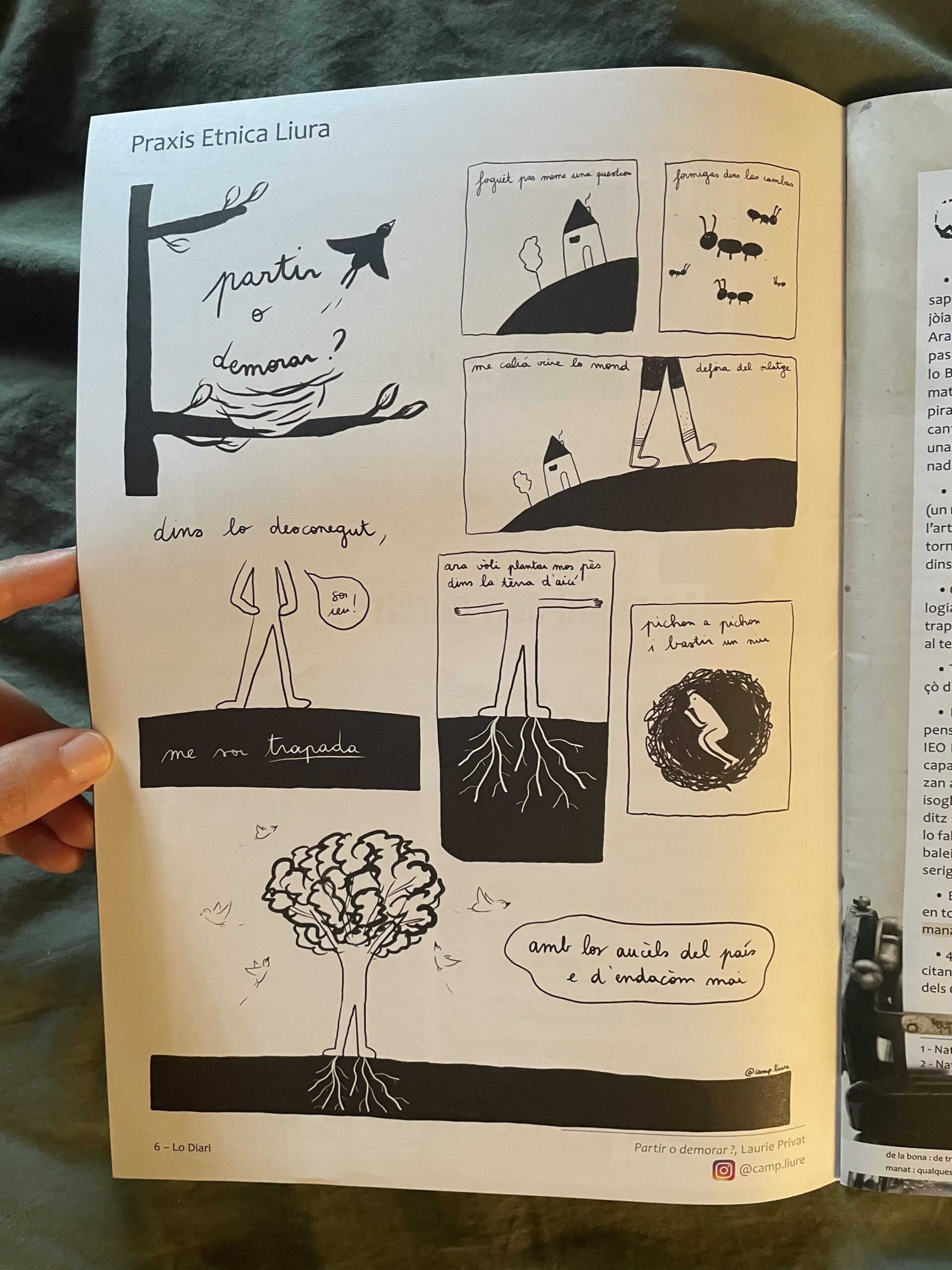 Pichòta BD publicada dins la pagina d’expression artistica de LA PEL dins Lo Diari de julhet-agost de 2024 sus la tematica dels aucèls.