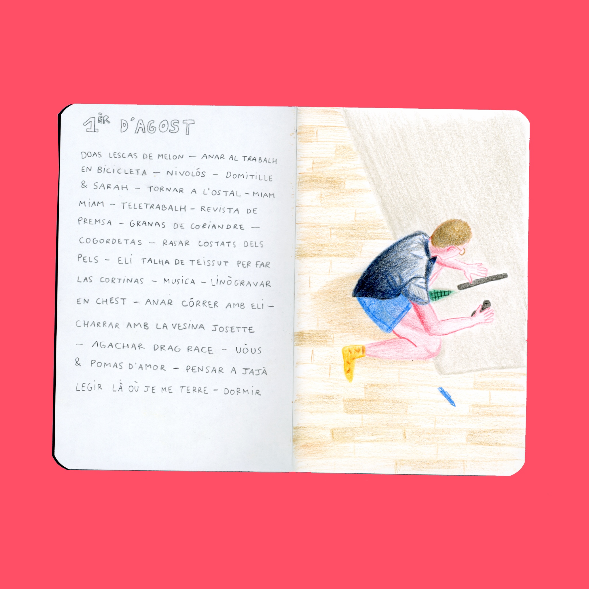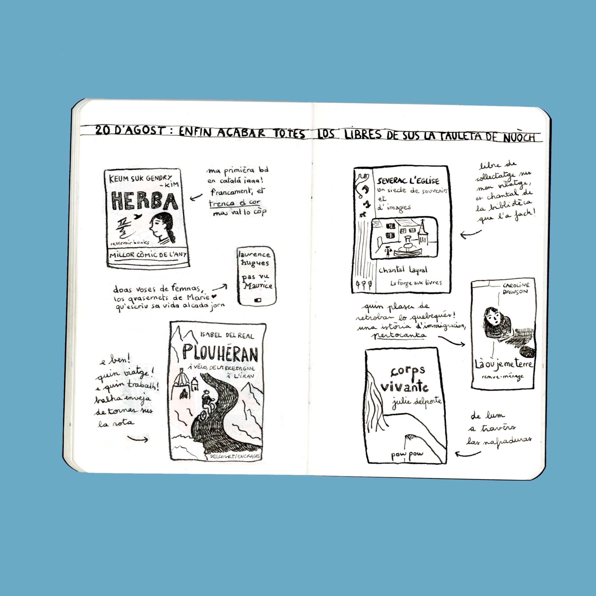 A la debuta, èra un pauc coma un desfís personal, voliái passar mai de temps a dessenhar e escriure. I aviá exactament 31 doblas paginas dins mon quasernet, las vacanças aprochavan. Farai un dessenh per jorn, tot lo mes d’agost. Après, me soi demandada s’aquò valiá lo còp d’o partejar, s’èra pas tròp intima. E puèi a plan soscar, ai pensat qu’èra tròp important de rendre visible l’occitan del cada jorn : pas una lenga mòrta, pas solament una lenga d’escòla o de cançon, una lenga per dire çò qu’avèm manjat a miègjorn e per desirar bona nuòch a las gents qu’aimam.